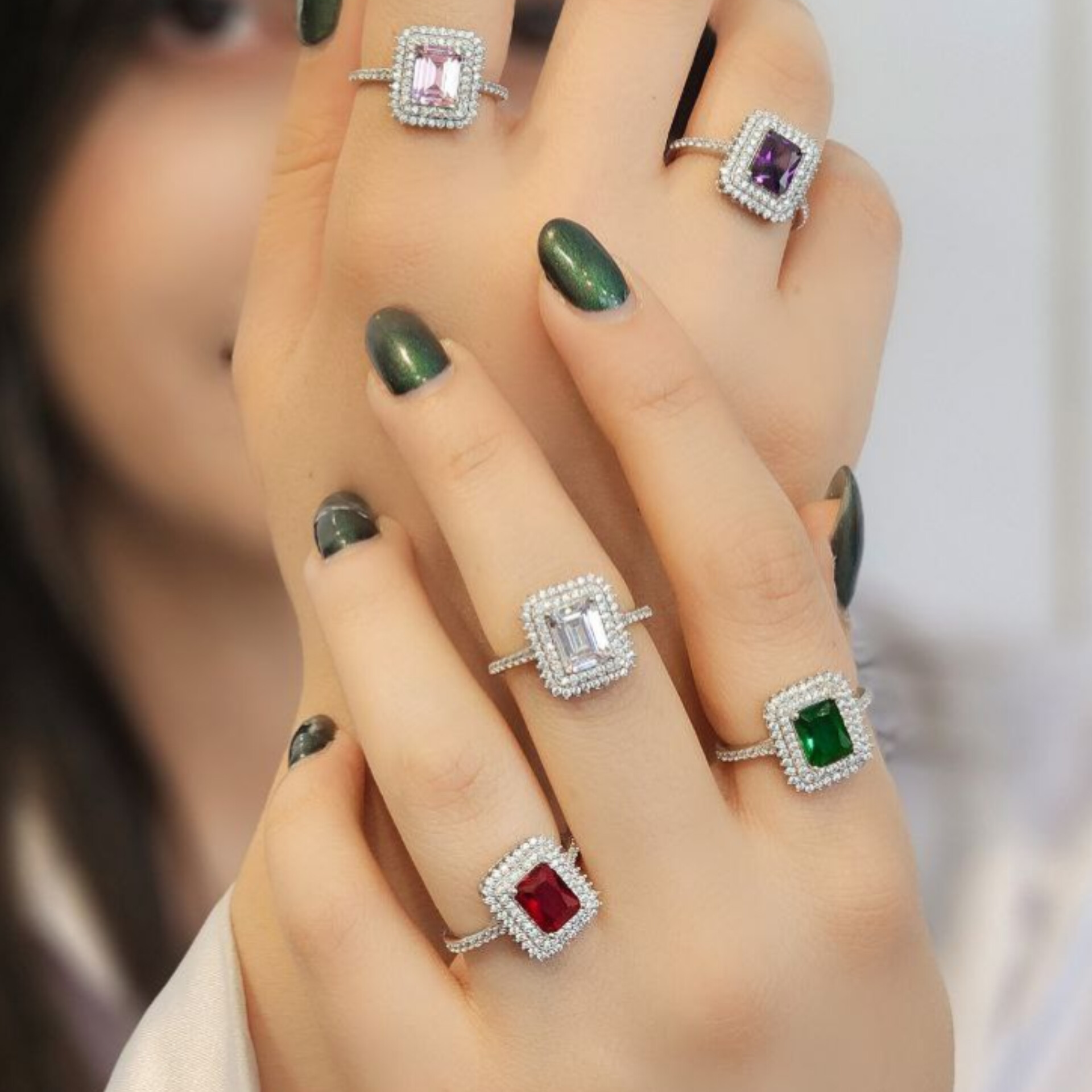 انگشتر نقره جواهری زنانه کد ۱۴۹۹، انتخابی بینظیر برای خانمهایی است که به دنبال خرید انگشتر نقره زنانه لوکس و خاص میباشند. این انگشتر زیبا از نقره با عیار ۹۲۵ ساخته شده و با آبکاری طلاسفید پوشانده شده است که درخشندگی و مقاومت آن را به طور چشمگیری افزایش میدهد. استفاده از نگینهای الماسه سیننتیک درجه یک با رنگ ثابت، جلوهای لوکس و درخشان به این انگشتر بخشیده است که مناسب استفاده در مجالس و مهمانیهای رسمی است.
